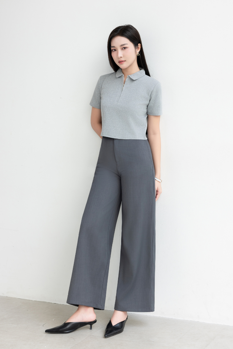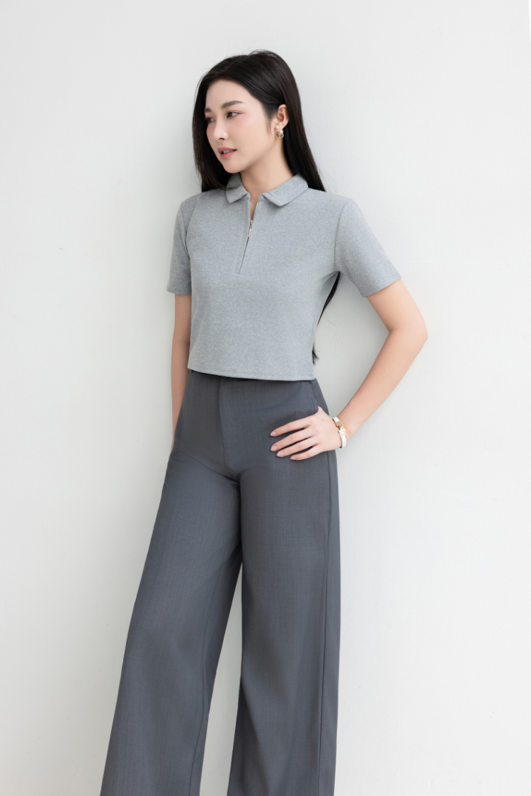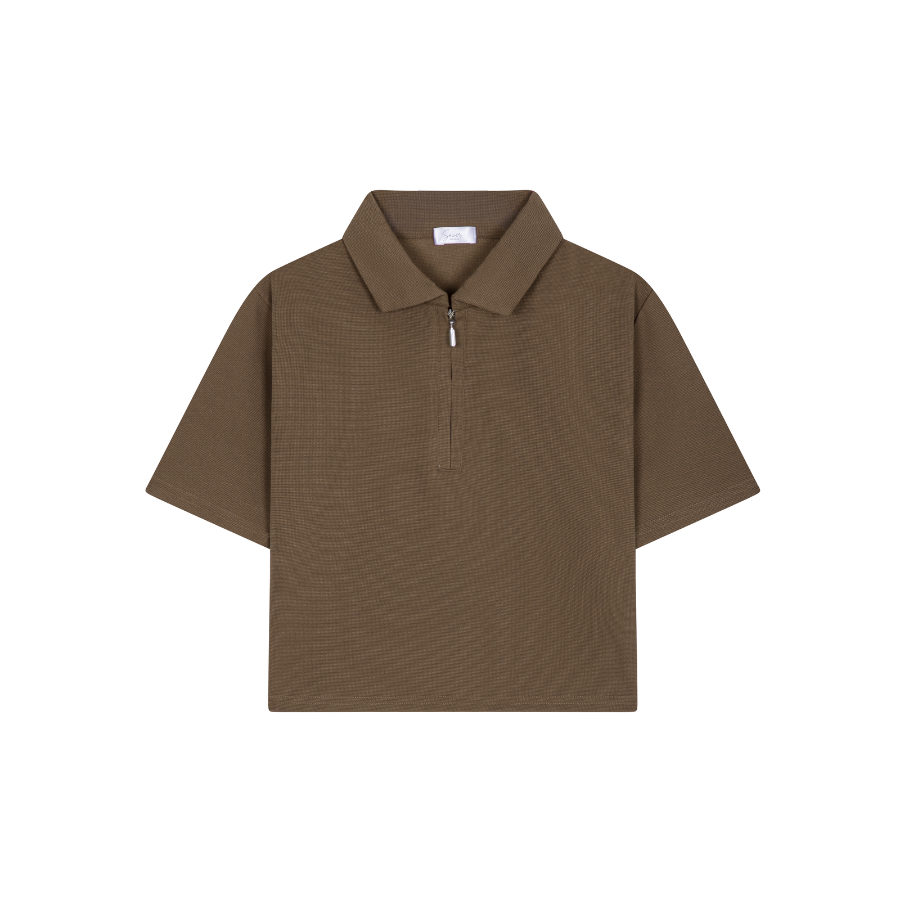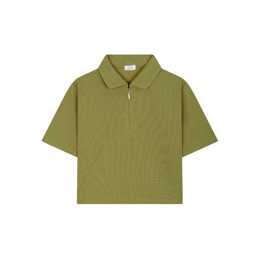 Áo polo nữ Lapi croptop tay ngắn dây kéo kim loại Sower tay ngắn vải thun nano – A07