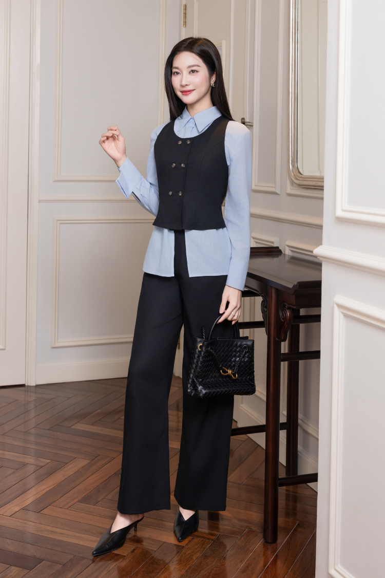 Dễ phối sơ mi, gile, blazer, giày cao gót hoặc loafer.